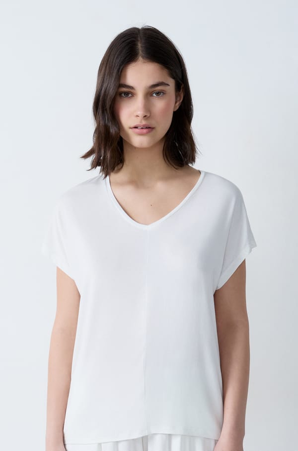 Top liso de manga corta;${refinementColor}