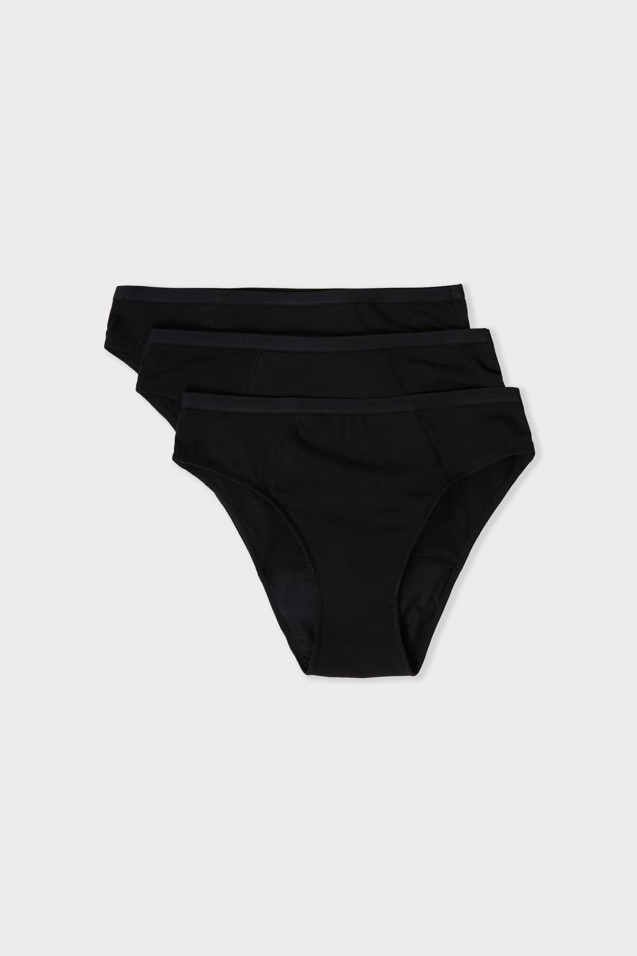 Ce pack de culottes de règles contient 2 culottes pour flux abondant et 1 culotte pour flux moyen.