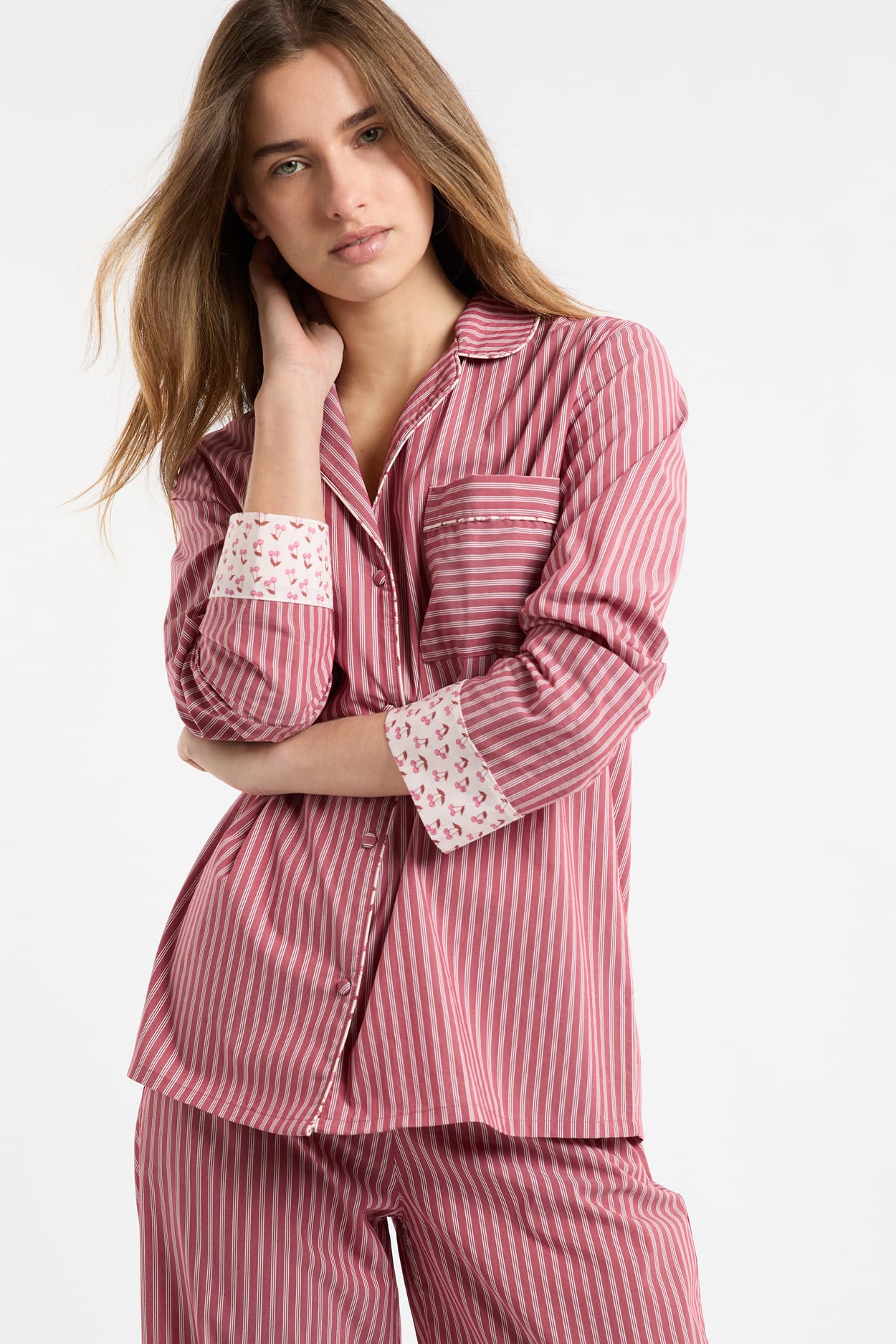 Camisa de pijama a rayas de algodón estampada con motivos mocktail...