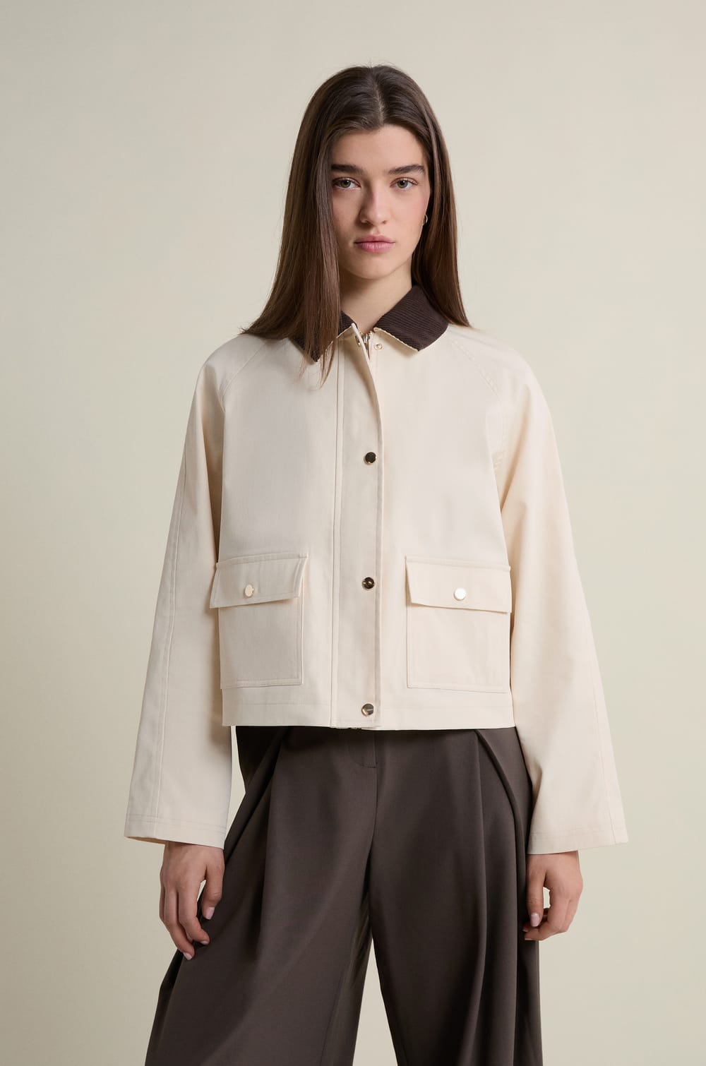 Chaqueta corta con cuello de terciopelo...