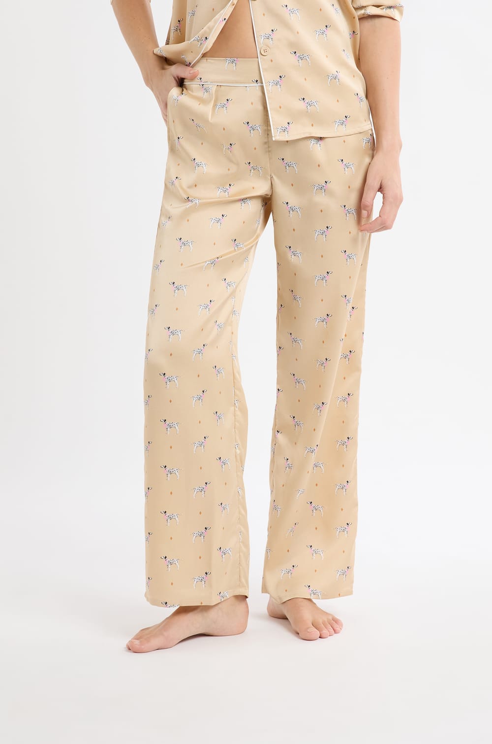 Pantalón de pijama de satén con estampado de dálmatas...