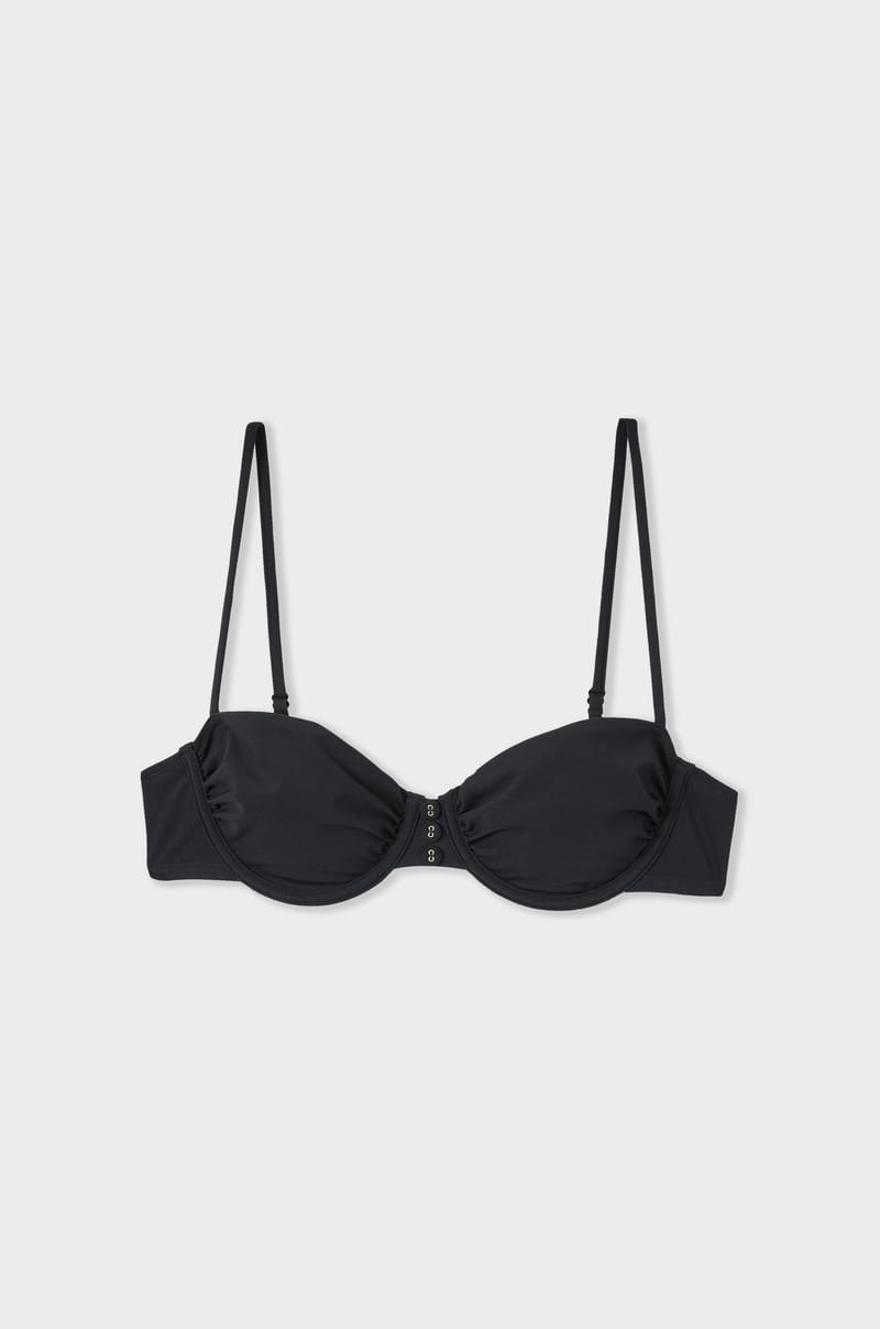 Une vibe rétro, une forme incontournable : découvrez le haut de maillot de bain corbeille de la collection capsule créée en collaboration avec Marcia Wear.