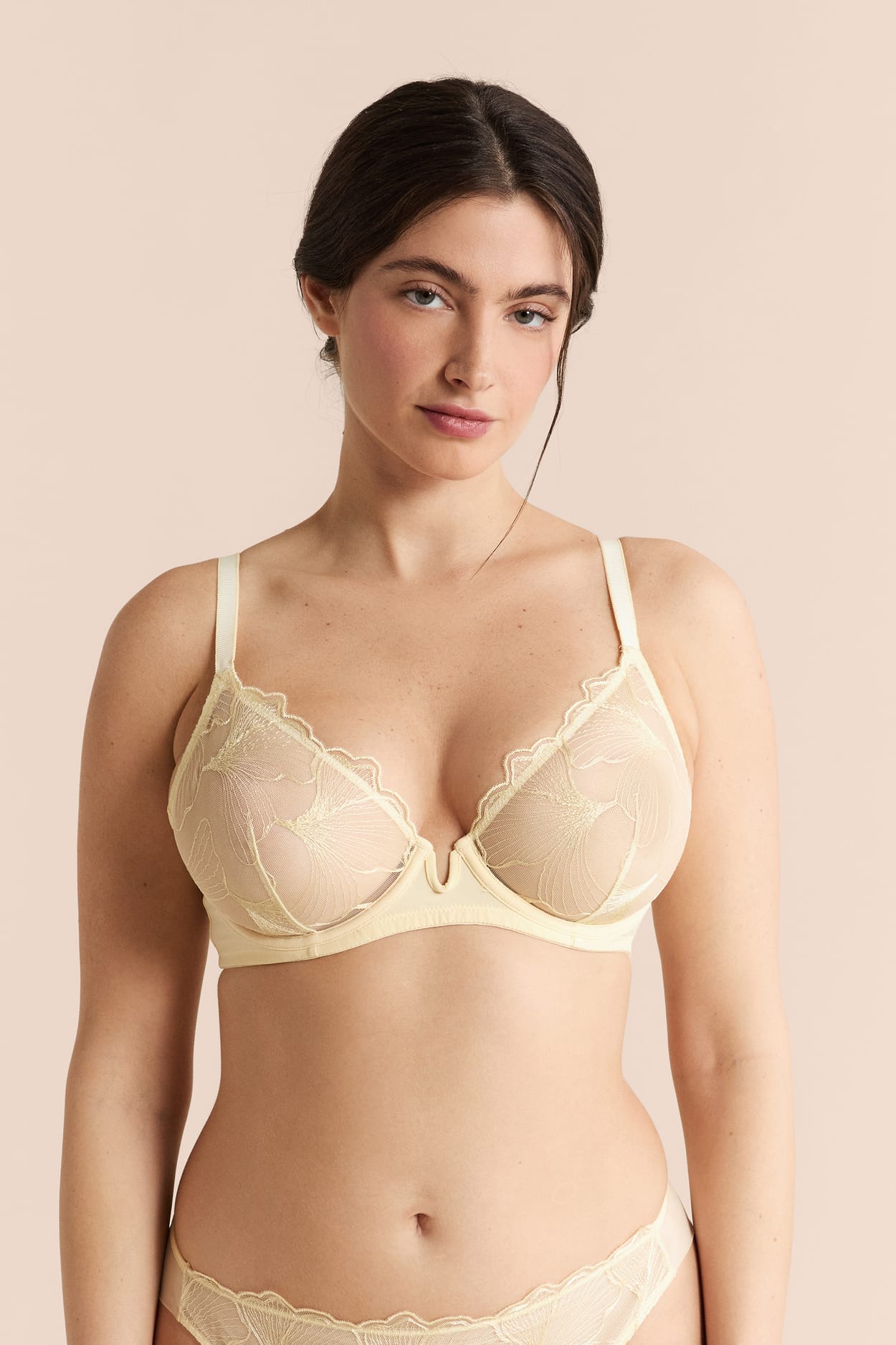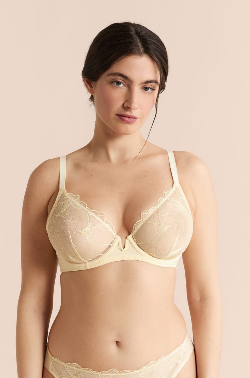 Elegante y cómodo, este sujetador bordado ofrece una sujeción clásica sin copas gracias a su delicado tul, ideal para el uso diario.