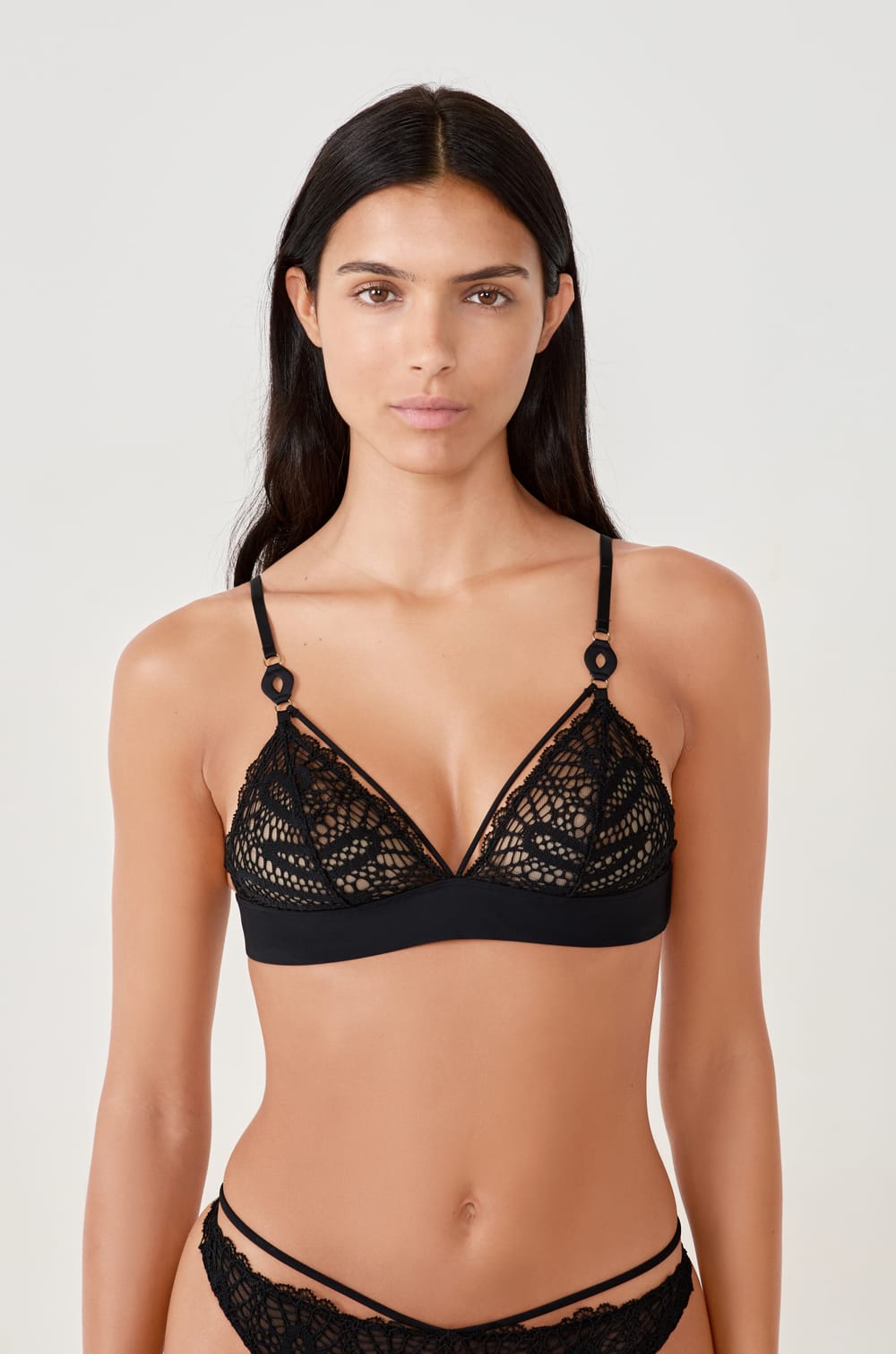 Délicat et sophistiqué, ce soutien-gorge joue sur la transparence. Il est muni d'un motif et de bords festonnés en dentelle. Il offre un décolleté plongeant pour une allure sensuelle et féminine.