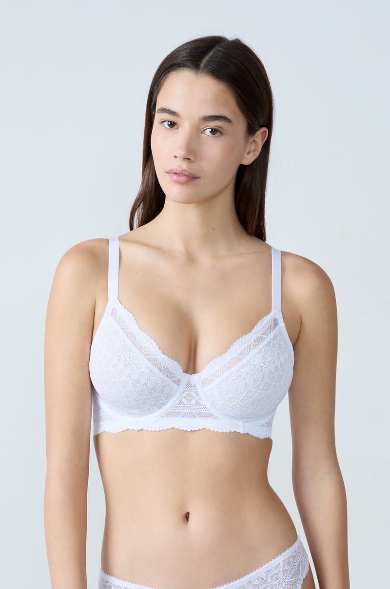 Delicadeza, refinamiento y sensualidad: hemos combinado nuestro encaje IDOLE con un modelo atemporal de diario que le acompañará todo el día con comodidad y sensualidad.