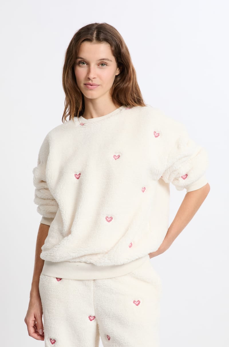Sweatshirt à motifs coeurs effet polaire;${refinementColor}