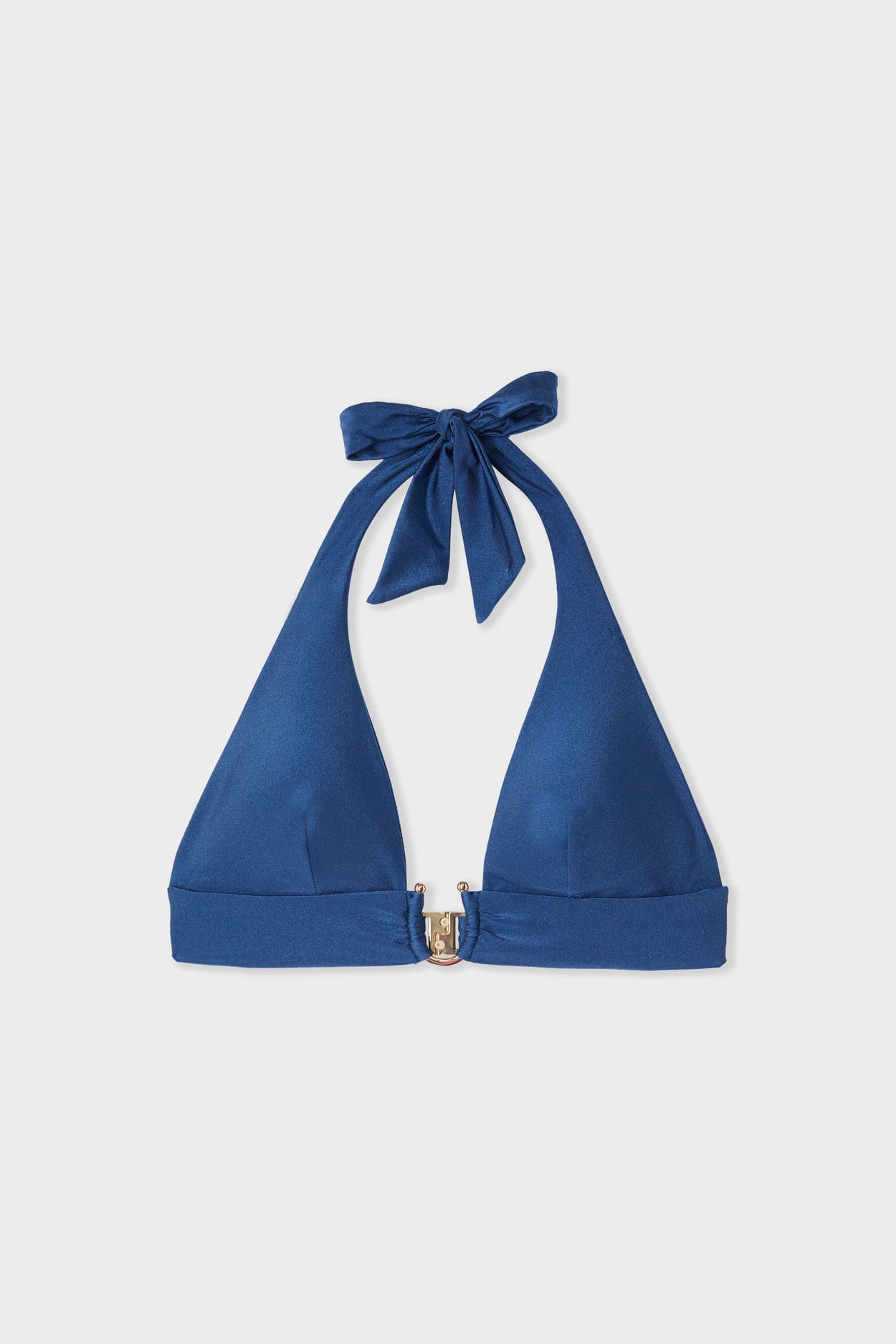 Ce haut de maillot de bain triangle mise sur une ligne nette et un décolleté structuré. Sa bande sous poitrine assure un bon maintien, tandis que son détail anneau apporte une touche chic et précieuse.