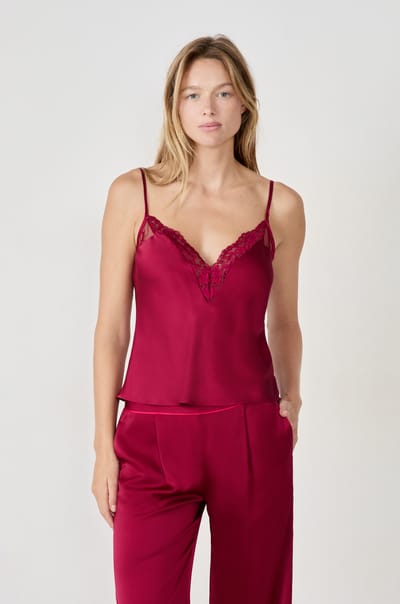 Top de tirantes satinado con detalles de encaje;${refinementColor}