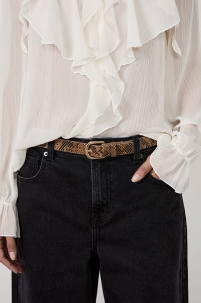 Camisa de manga larga de algodón con cinturón;${refinementColor}
